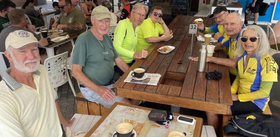 ![]() Resuming afer coffee, Canton Beach - 25 January 2026 Twenty three riders assembled at Wyong for our ride to Norah Head. The weather was excellent and we were expecting very hot conditions according the forecast. No incidents at all and we had a beautiful outlook over the lake as we rode the shared path. Thanks to Len who suggested we go to the Indian Coffee Cafe at Canton Beach as, being a long weekend, Norah Head was likely to be very crowded. He called them and booked a couple of tables and we then proceeded to Norah head and stopped for coffee on the way back. Tables were set for us inside and the coffee and sustenance was very good. Danny was there as well and we had a nice break before heading back to Wyong at around 11.30am. Many thanks to John for sweeping and all those who rode. Andrew ![]() Full house for coffee, Canton Beach - 25 January 2-26 |